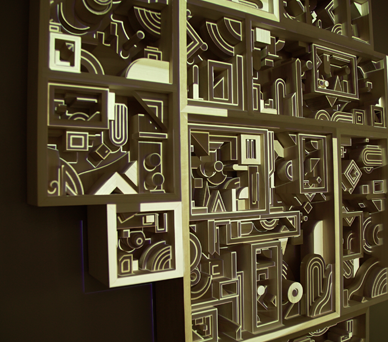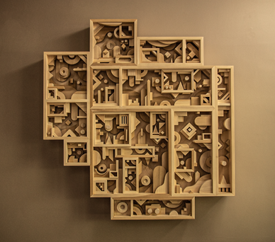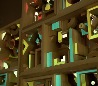 Saskatoon is the first in a series of wooden sculptures created to work in-tandem with custom projection mapped animations. This first piece took almost a year to fully realize and represents many hours of research, design and assembly. The vibrant color and fluid movement of this piece evoke a meditative mood with nimble shapes that cultivate a sense of quiet curiosity.