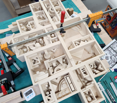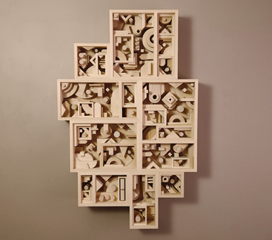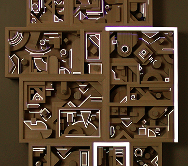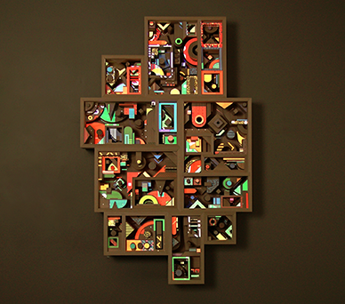 Thigmotactic is the second in a series of wooden sculptures created to work in-tandem with custom projection mapped animations. It utilizes color, texture and movement to create a more dynamic look that constantly evolves with the viewer. The result is a piece that feels bold, energetic and unique on each examination.